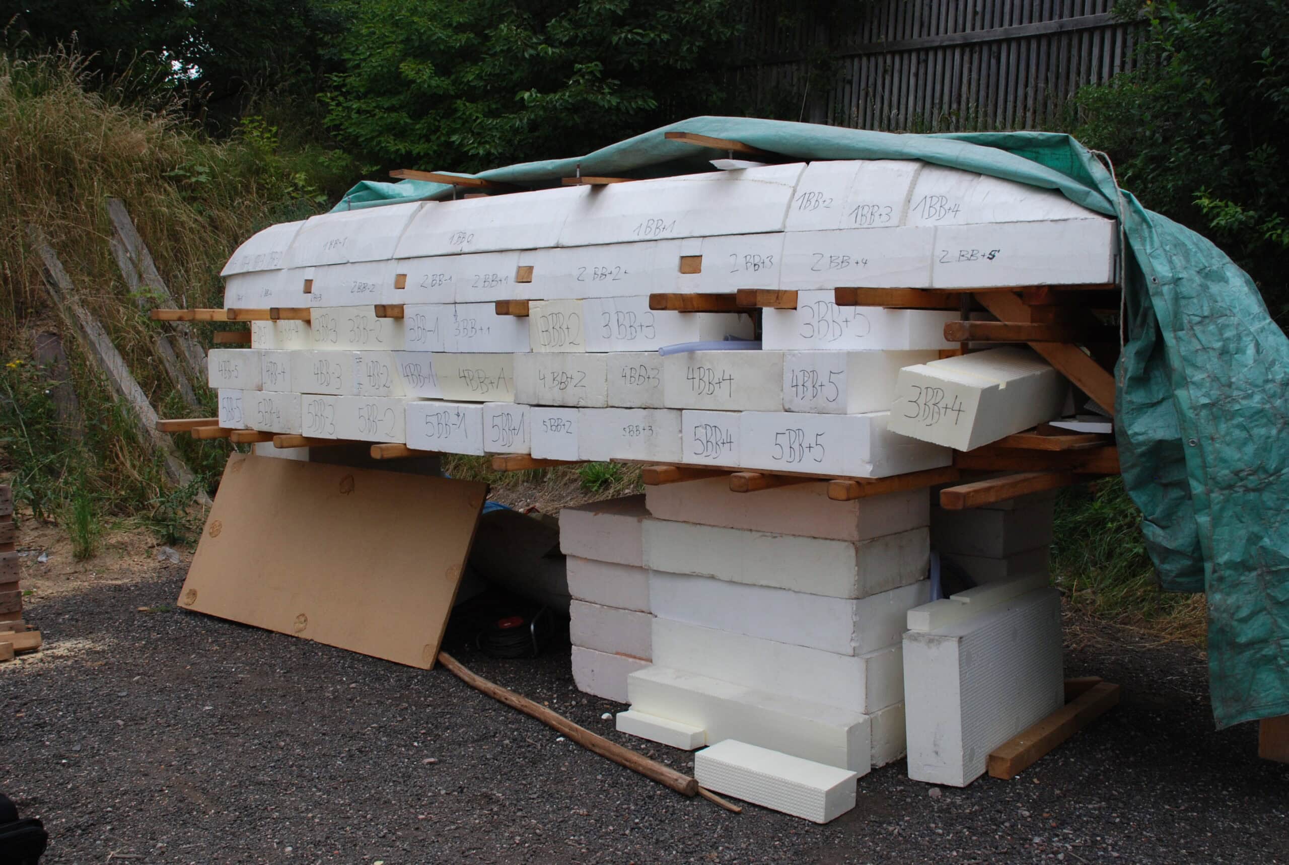 Moderne Materialien aus Holz, Styropor und Schilfmatten als Schwimmkörper