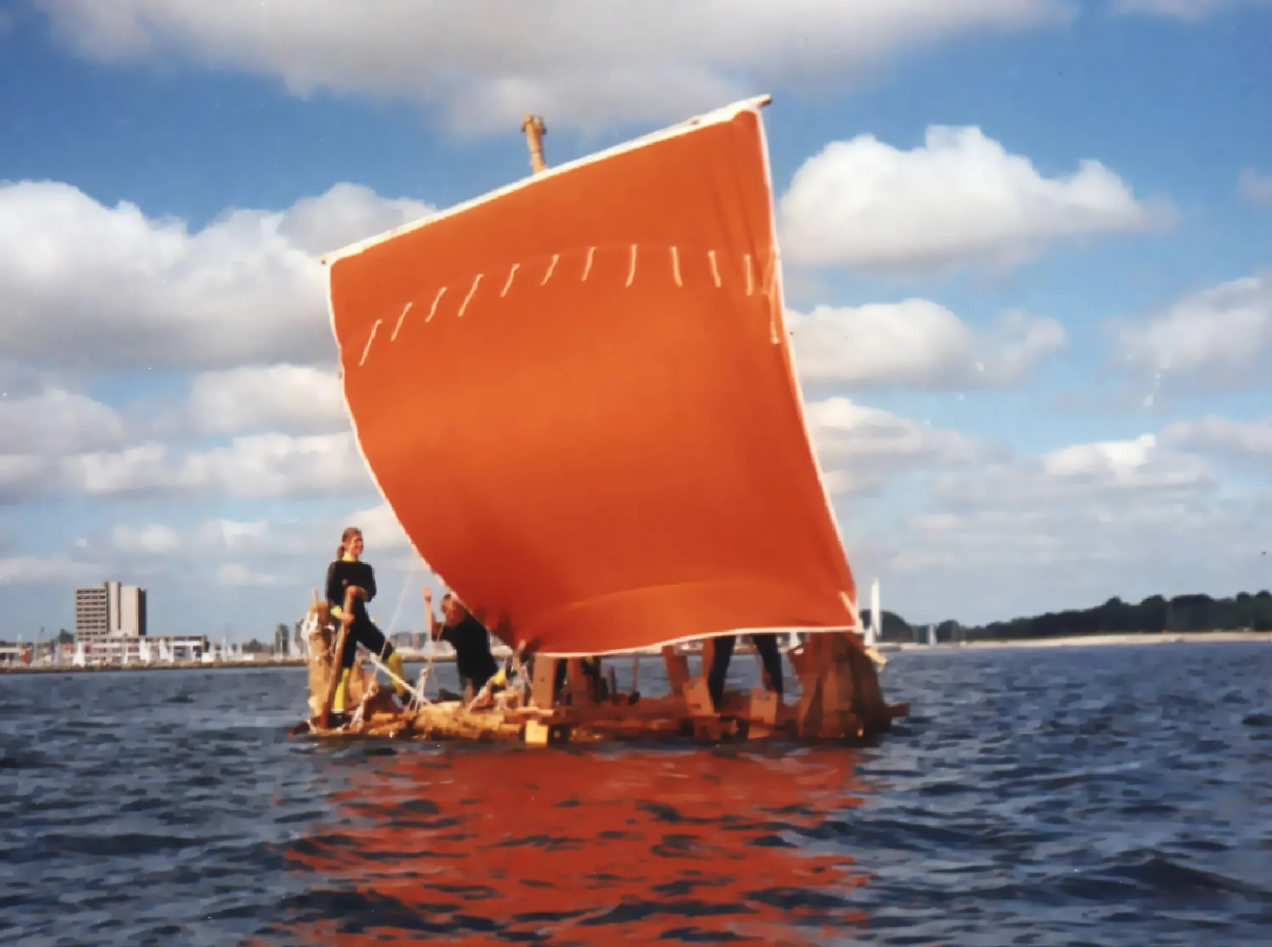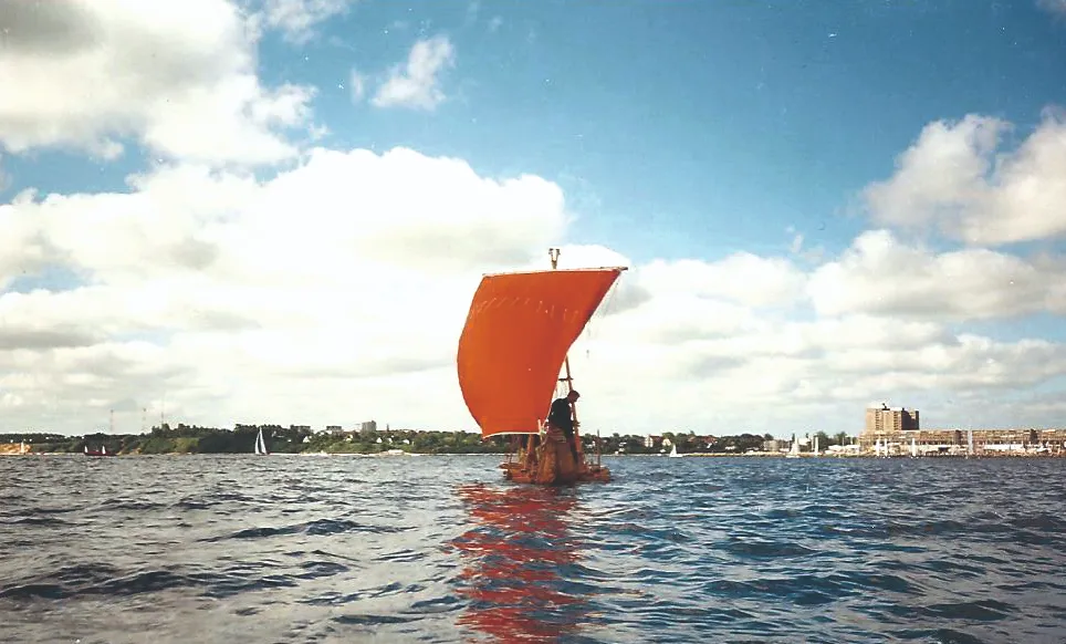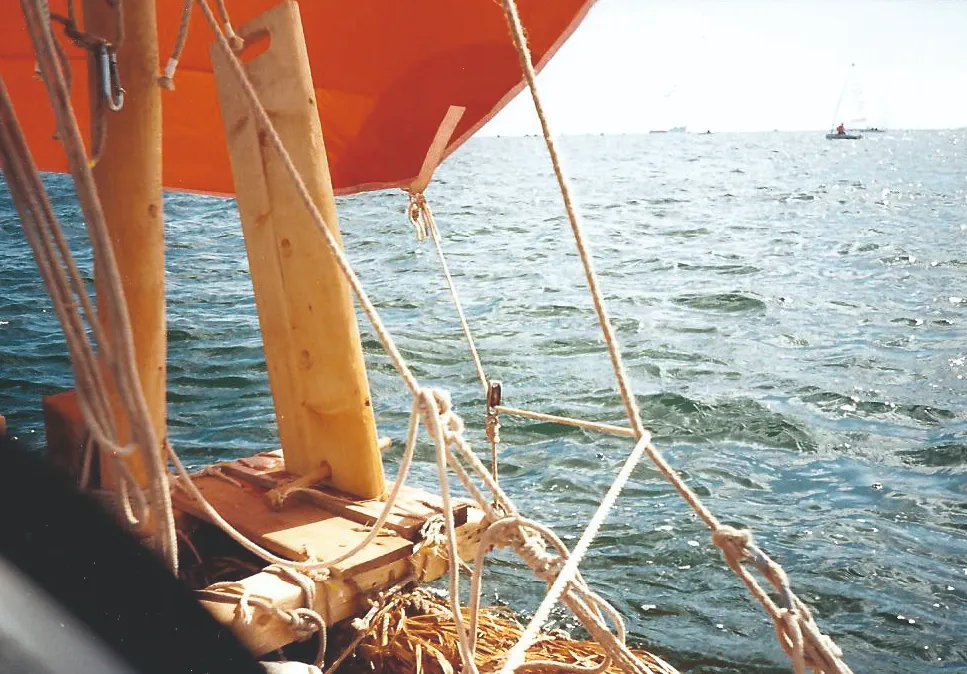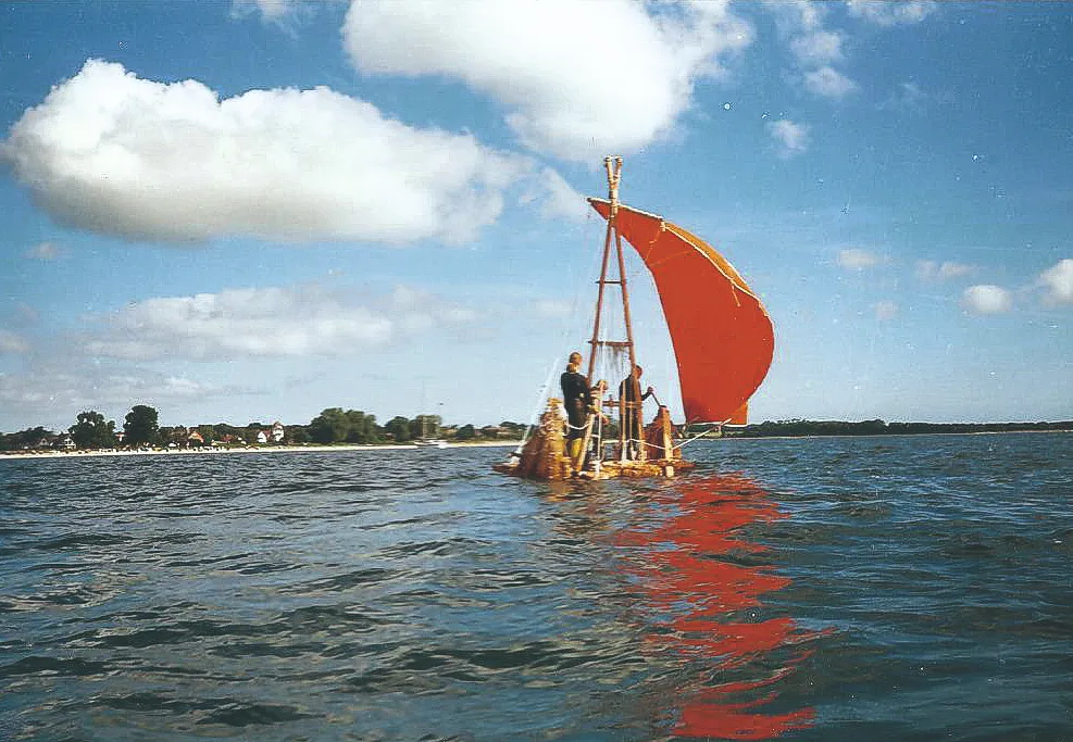 The opportunity for the first major test arose in 1994, when Dominique Görlitz and his crew were invited to the 100th Kiel Week. The Schilksee Olympic harbor became the starting point for the first offshore trials of a DILMUN reed boat.