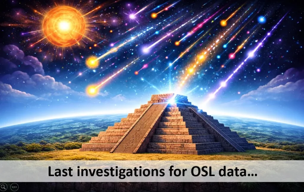 Nochmals der Einsatz des Spektrometers von Jorge auf der Santis-Pyramide. Dort wo er misst, ist der älteste Teil dieser Stufenpyramide. Von Jorge aus geht eine Rampe nach rechts unten. Diese wurde später vor den älteren Pyramidenstumpf davorgesetzt. Das kann man in den Ergebnissen der OSL deutlich ablesen! Das Gebiet auf dem die Pyramide steht wurde vor 60 Jahren künstlich mit Boden aufgeschüttet. Auch diesen „Event“ kann man in den OSL-Daten ablesen und bestätigen!
