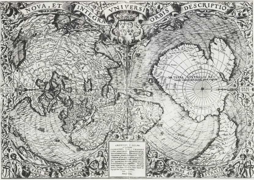 • die Finaeus-Karte von 1531, welche die Antarktis nahezu vollständig abbildet,