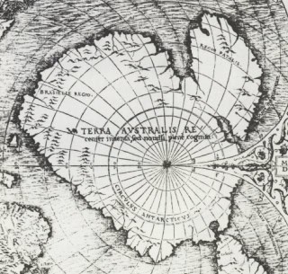 Dieses Bild dürfte es eigentlich nicht geben, denn die Antarktis wurde erst um 1820 durch eine russisch-deutsche Expedition entdeckt. Richtig erkundet wurde sie jedoch erst mit Hilfe der Radiotelemetrie in den 60er Jahren des 20. Jahrhunderts. Vorher wusste man nicht genau, wie die Umrisse der Antarktis exakt aussehen!