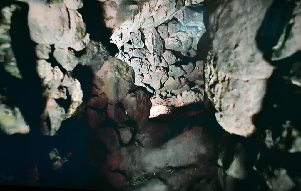 Blick in das Innere der steinernen Grabkammern. Damals gab es an dem Bauwerk keine weiterführenden Informationen über Funde oder etwaige Ausgrabungen. Manche der Gänge gehen bis mehr als 6 m tief in das Bauwerk. Andere sind ehe kurz. An klassischen Stufenpyramiden sind solche „Kammern“ bis auf ganz wenige Ausnahmen (vielleicht nachträglich eingebaut?) nicht vorhanden.