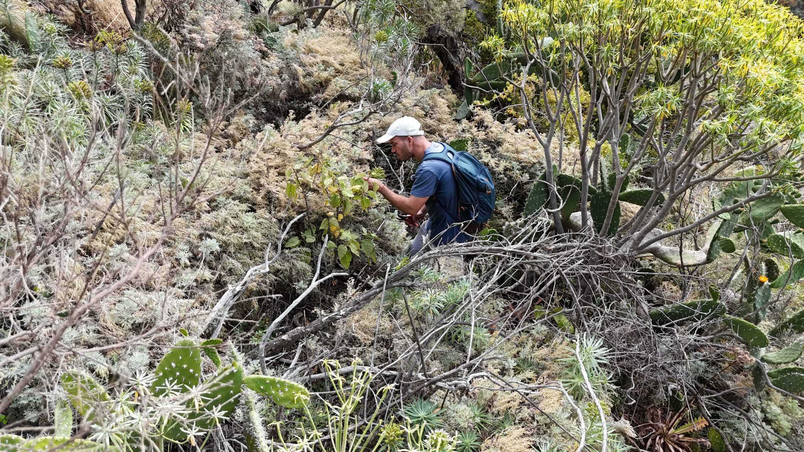 Dieses Bild entstand mit den Botanikern der Universität La Laguna. Görlitz durfte mit einer Sondergenehmigung die Pflanzen nach Spanien zur Untersuchung ausführen.