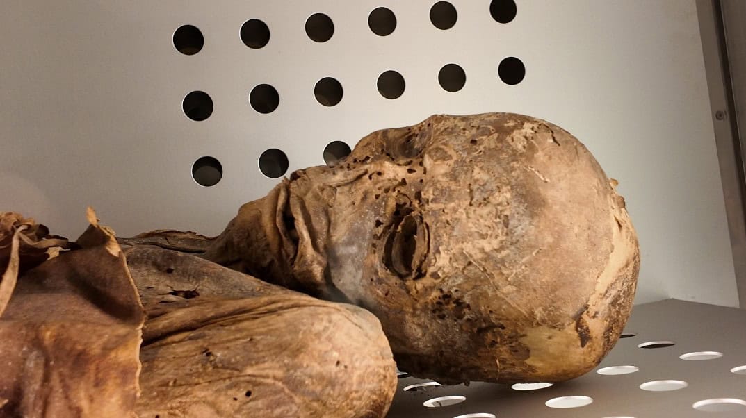 Besonders aufschlussreich ist dabei der außergewöhnlich gute Erhaltungszustand einzelner Individuen. Vor allem die sogenannte „zusammengesetzte Mumie“ zeigt im Kopfbereich eine bemerkenswerte Konservierung von Weichgeweben, darunter Lippen, Augenlider und Ohrstrukturen. Dieser Befund spricht gegen eine ausschließlich natürliche Mumifizierung durch Trockenheit und deutet auf gezielte konservierende Maßnahmen hin.