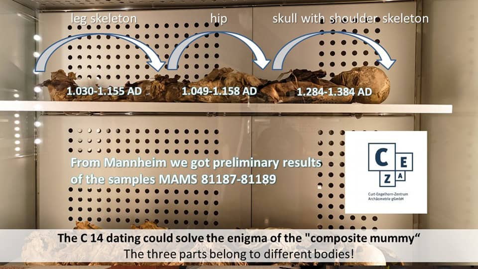 Drei Mumienfraktionen wurden unabhängig voneinander in Deutschland und Griechenland mittels C14-Datierung untersucht. Die Ergebnisse weisen konsistent in einen Zeitraum zwischen ca. 1.000 und 1.250 n. Chr. Diese Datierungen belegen eindeutig, dass es sich um vorspanische Mumien handelt und schließen eine neuzeitliche Entstehung aus.